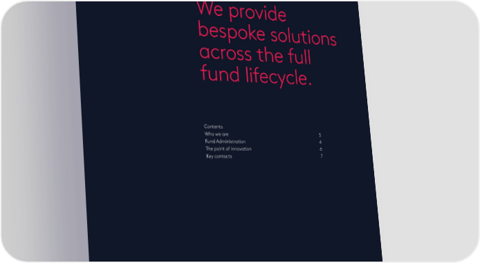 We provide bespoke solutions across the full fund lifecycle. Contents Who we are 3 Fund Administration 4 The point of innovation 6 Key contacts 7